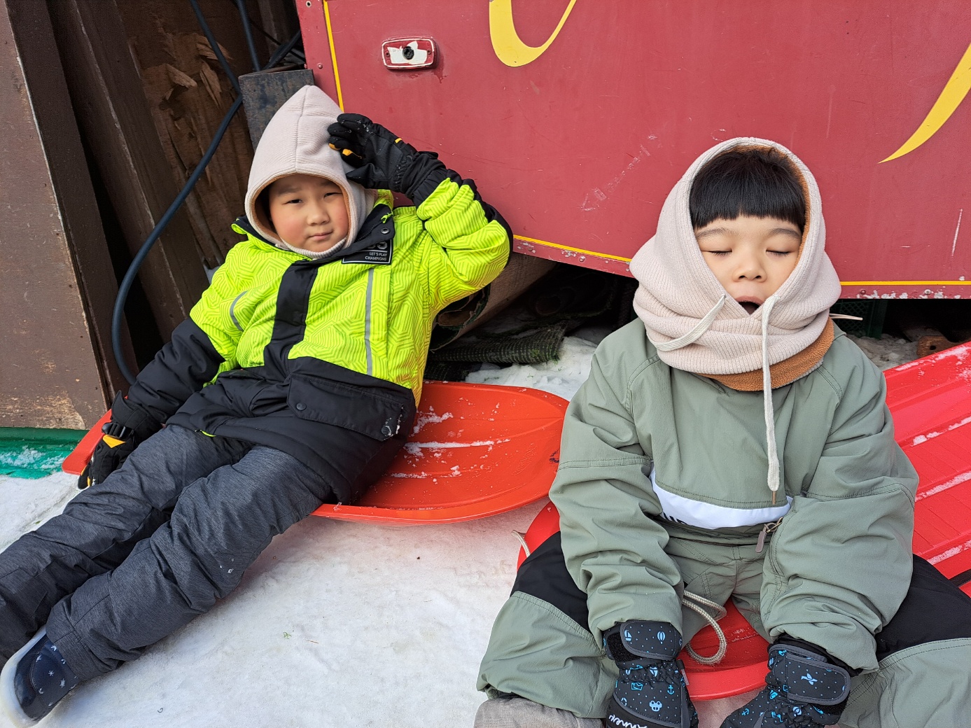 유치원, 1~2학년 눈썰매를 안전하게 선생님들과 재미있게 탔으며,